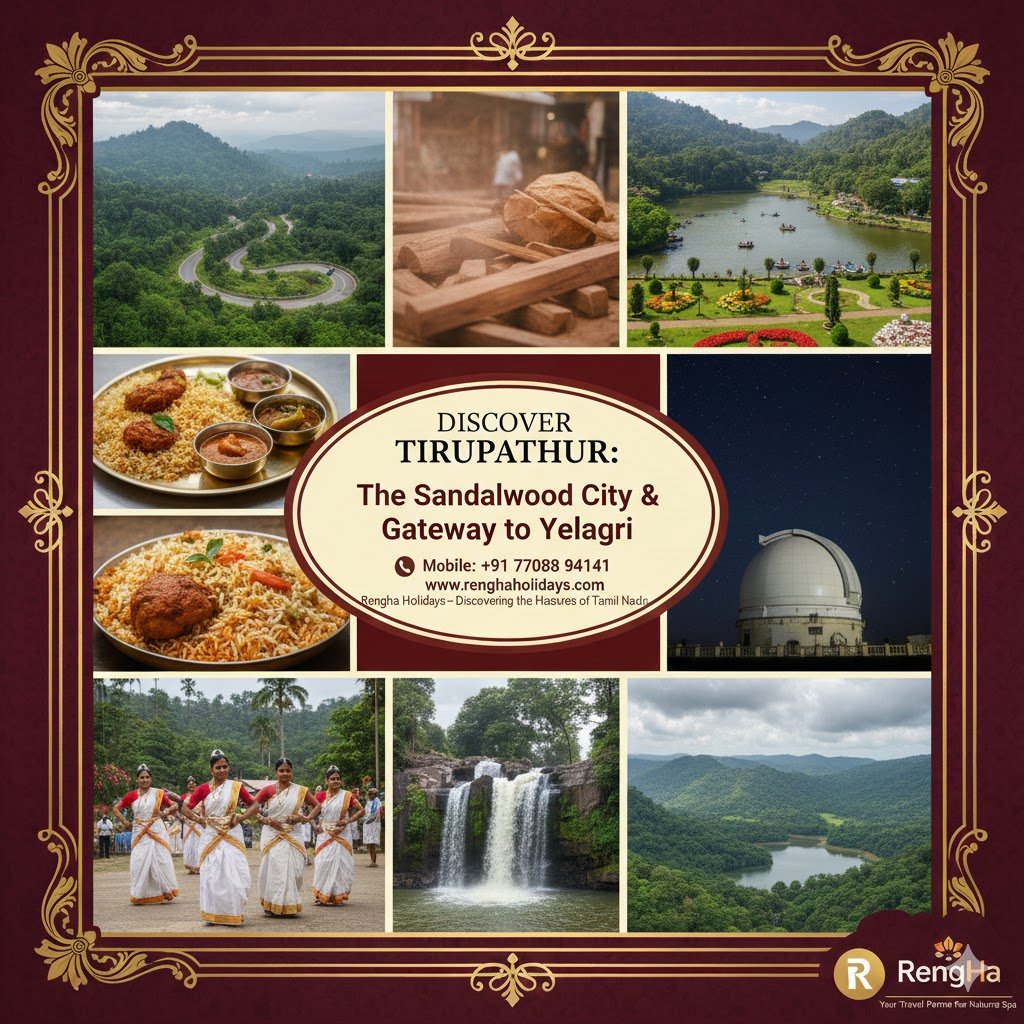 Tirupathur (also spelled Tirupattur), a newly formed district carved out of Vellore in 2019, is a region of quiet beauty, ancient history, and aromatic sandalwood. Known as the "Sandalwood City" due to its historical abundance of sandalwood reserves and forest offices, it acts as the gateway to the popular hill station of Yelagiri. Situated at the foothills of the Eastern Ghats, Tirupathur offers a pleasant climate, trekking adventures, and a deep connection to Jain heritage. This guide explores the vibrant culture, local cuisine, administrative structure, and must-visit tourist destinations of the Tirupathur district.