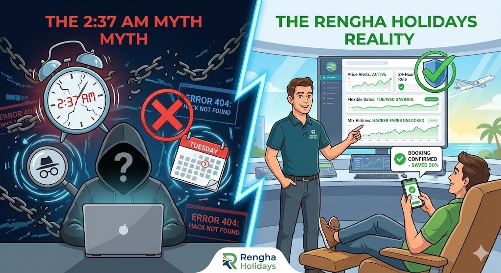 The "2:37 AM Hack" is a viral travel theory suggesting that airlines release unpaid reserved seats back into inventory at exactly 2 37 AM, causing a temporary price drop. Rengha Holidays confirms this is largely a myth in 2026. While flying at off-peak hours (like 2 AM) is cheaper, booking at that specific time offers no algorithmic advantage over booking at 2:00 PM.