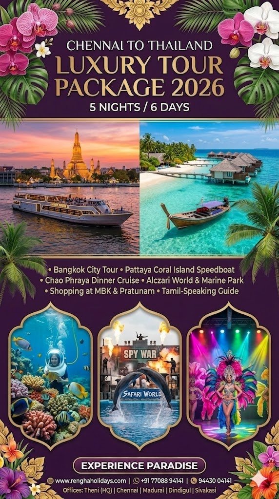 Book the ultimate Phuket & Krabi tour from Chennai with Rengha Holidays. 6-day 2026 packages include flights, Phi Phi Island tours, 4★ beach resorts, and Tamil support. Call 77088 94141 today!