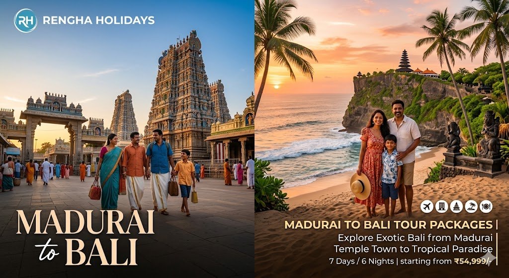 Escape to the tropical paradise of Indonesia with Rengha Holidays' exclusive Madurai to Bali Tour Packages. Designed specifically for travelers from Tamil Nadu, our packages offer a perfect blend of spiritual heritage, adventure, and luxury relaxation.