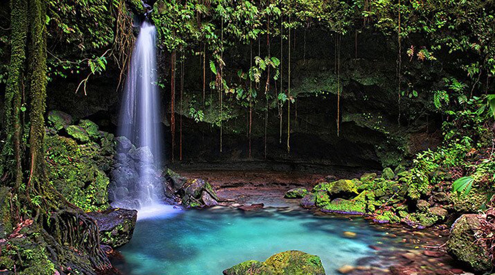 Dominica is a mountainous Caribbean island nation with natural hot springs and tropical rainforests. Morne Trois Pitons National Park is home to the volcanically heated, steam-covered Boiling Lake. The park also encompasses sulphur vents, the 65m-tall Trafalgar Falls and narrow Titou Gorge. To the west is Dominica’s capital, Roseau, with colorful timber houses and botanic gardens.