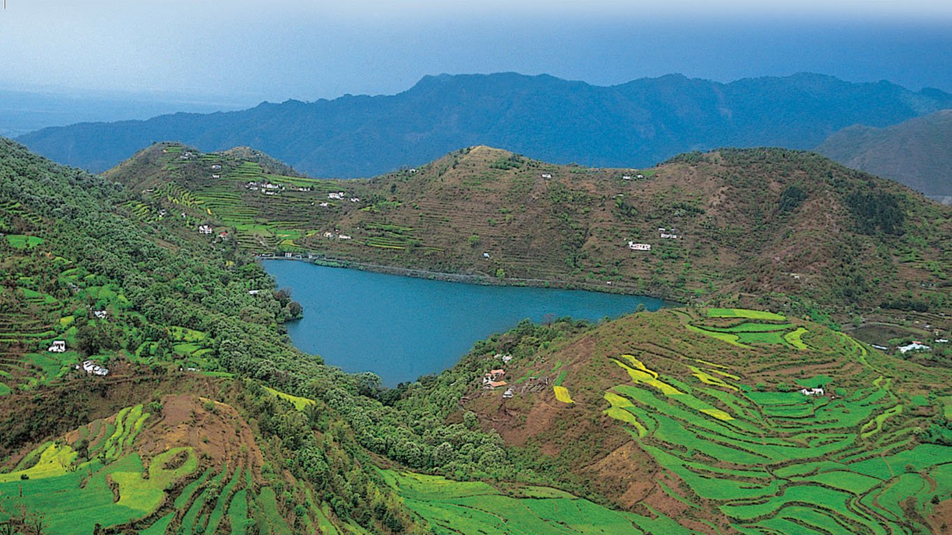 Naukuchiatal or "lake of nine corners" is a small hill station, near Nainital Town in Nainital district of Kumaon, Uttarakhand, India. The chairman is Devendra Singh chanotiya. The lake is 175 feet deep and is situated at 1,220 metres above sea level. It is covered in trees and shrubs.